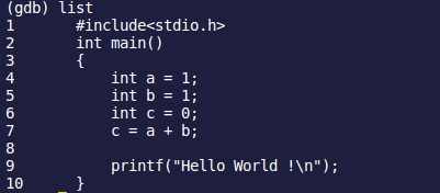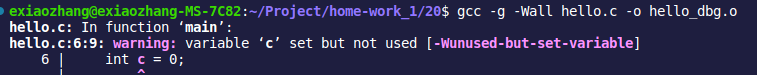 1 | gcc -g -Wall hello.c -o hello_dbg.o |