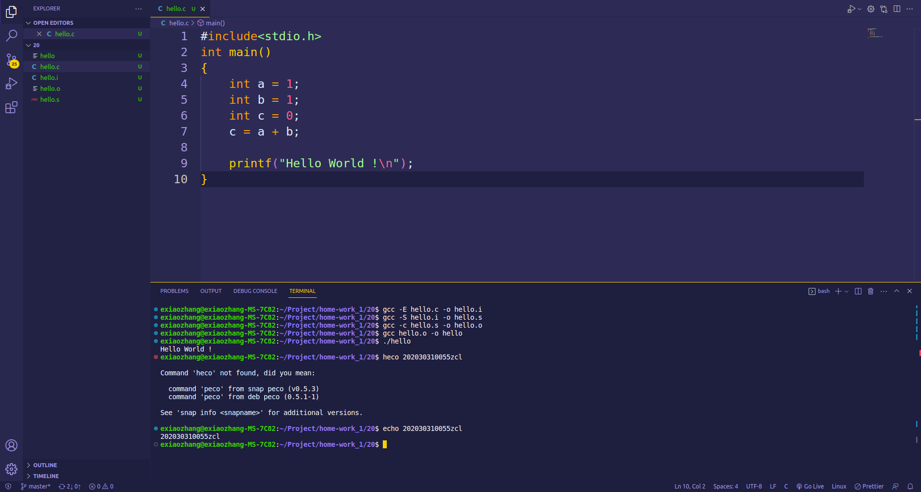 在VSCode按Ctrl+~打开终端,先清楚编译后的代码在编译