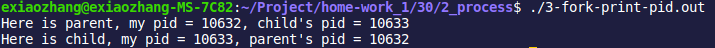 这里就打印出来了父进程和子进程的pid。父进程的pid是3147,子进程的pid是3148。