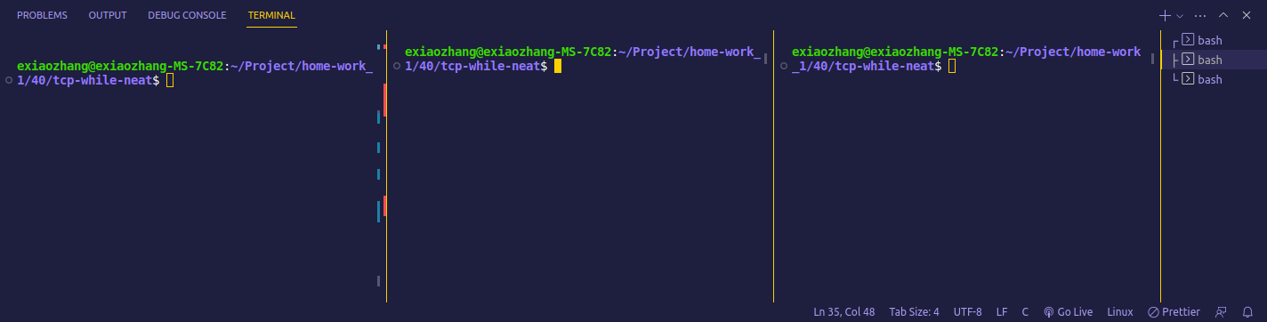 Split三个终端(在终端里面按住Ctrl+Shift+5)